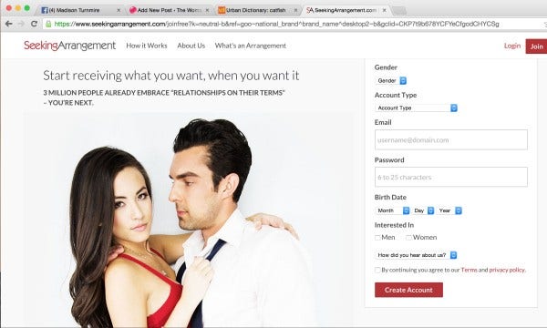 Holy crap! I quickly googled “Seeking Arrangement” and this is what I found: