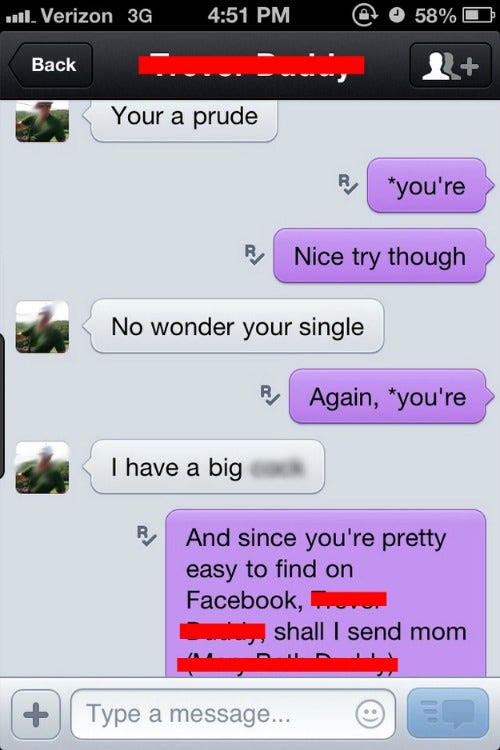 This heroic woman could probably give lessons to Taken star Liam Neeson on how to exact revenge. After receiving an unsolicited d*ck pic, she found the offender on Facebook and sent screengrabs of the conversation to his mother.
