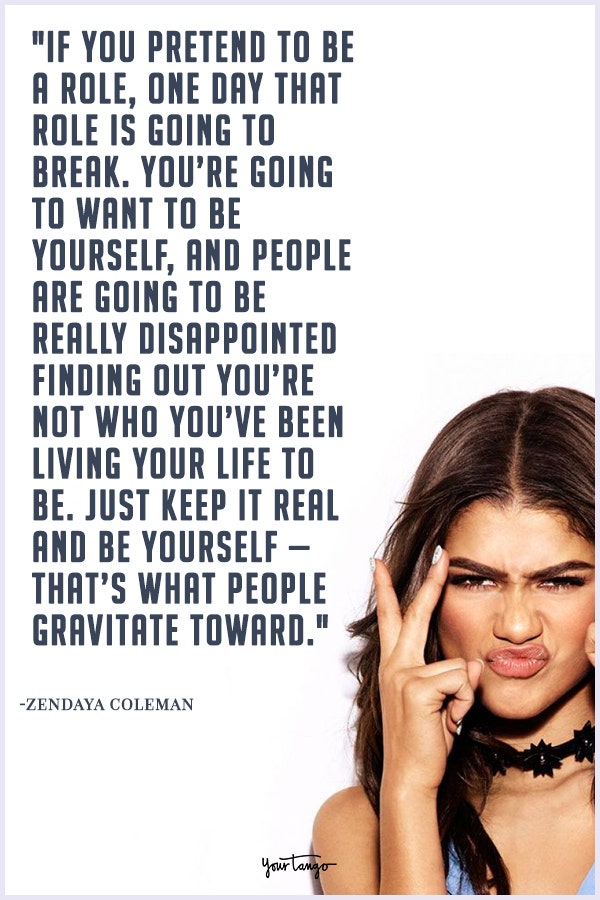 "If you pretend to be a role, one day that role is going to break. You’re going to want to be yourself, and people are going to be really disappointed finding out you’re not who you’ve been living your life to be. Just keep it real and be yourself — that’s what people gravitate toward."— Zendaya
