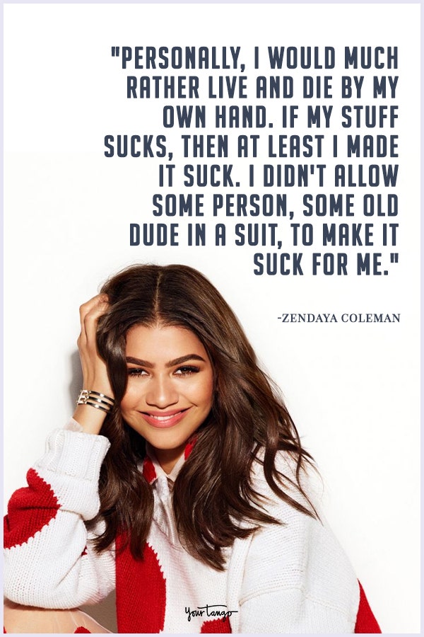 "Personally, I would much rather live and die by my own hand. If my stuff sucks, then at least I made it suck. I didn't allow some person, some old dude in a suit, to make it suck for me."— Zendaya